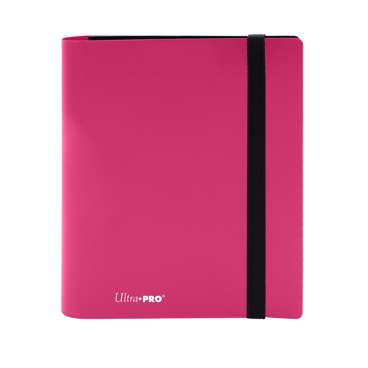 4-pocket Hot Pink PRO-Binder with embossed middle black web material gives cards a classic framed look. Side loading pocket design to prevent cards from easily falling out. Elastic strap holds the binder shut when not in use. All materials made from archival-safe, acid-free non-PVC material. Holds 160 cards in Ultra Pro Deck Protector sleeves.