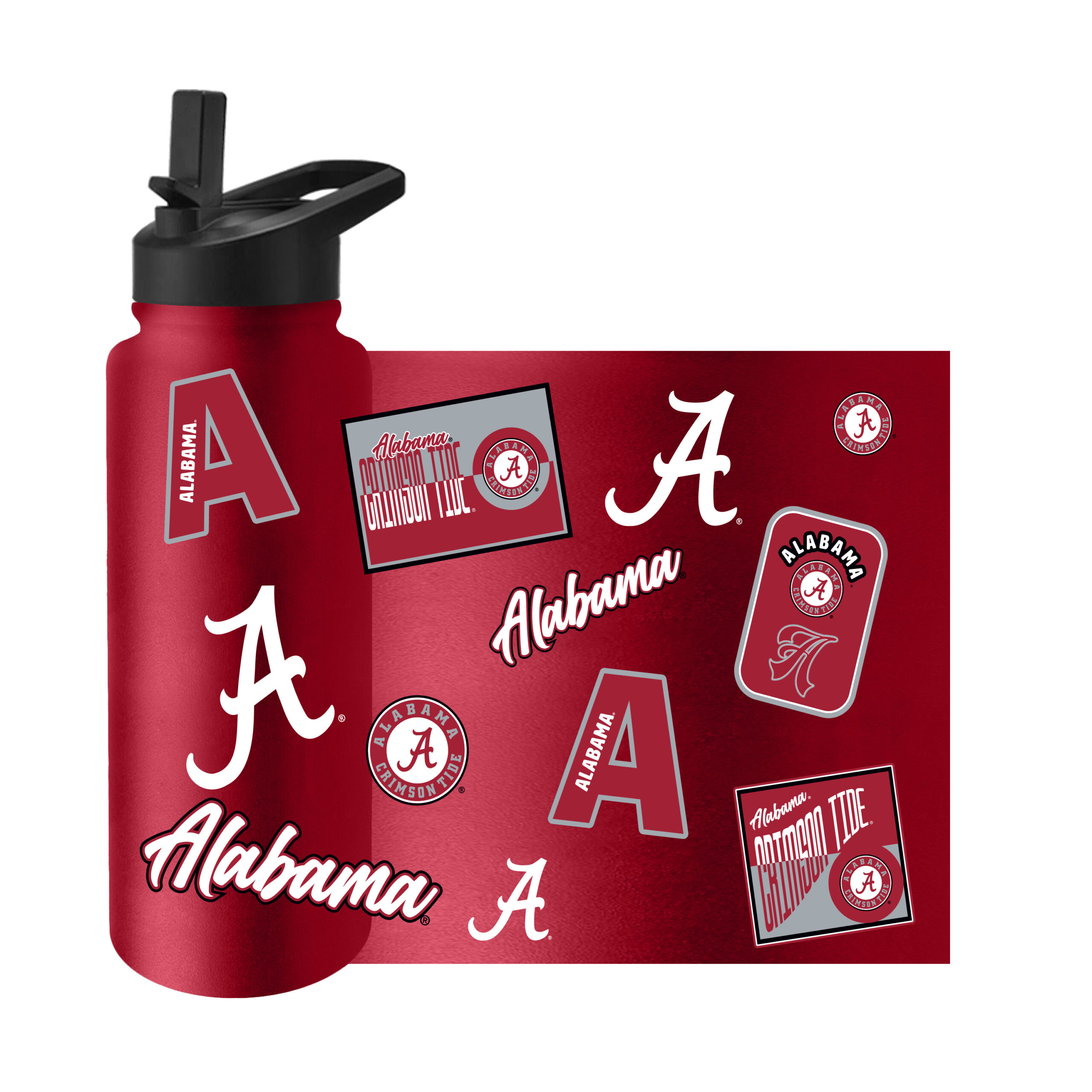 This durable 34 oz. Quencher Stainless Steel Bottle has a powder coat exterior and is made for all-day hydration. Double-walled and vacuum insulated, it features a no-spill, no-leak lid with a flip top spout and straw. The easy-carry handle makes for convenient sipping while on the go. Wide opening allows for easy fill. Keeps drinks cold for hours. Made of high quality stainless steel that does not change the taste of your beverage. Hand wash only. Made by Logo Brands.