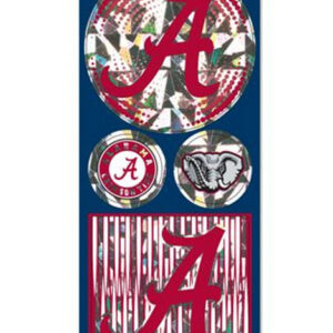 This sheet of die cut stickers is printed on a cracked ice holographic prismatic background. The sheet includes 5 stickers of various sizes, and the size of the sheet is 4″ x 12″. Made By Wincraft, Inc.
