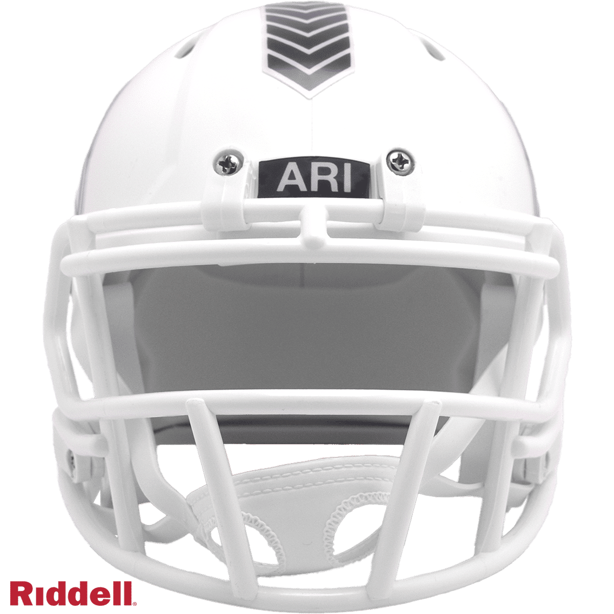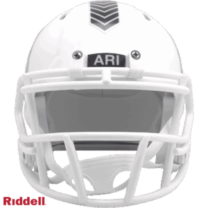 The Salute to Service helmets are inspired by those used by the military for decades, and are meant to honor the memory and selfless sacrifices of service members past and present. Each helmet features team logos, a chevron top stripe pattern, a stencil city name on front bumper, stencil Salute to Service back bumper, US Flag and official Sature to Service Ribbon. Made by Riddell.