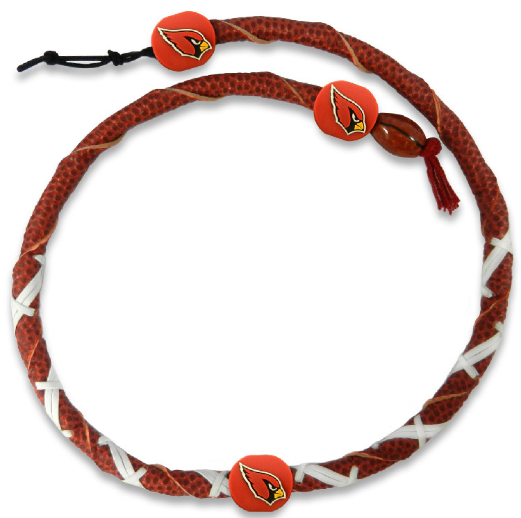 GameWear’s Spiral Football Necklace is made from genuine football leather. The football leather is twisted to create a unique style of necklace, which features the laces found on a football, along with three distinctive team logo beads featuring your favorite team logos. The necklace is adjustable to fit most neck sizes. Made By Gamewear