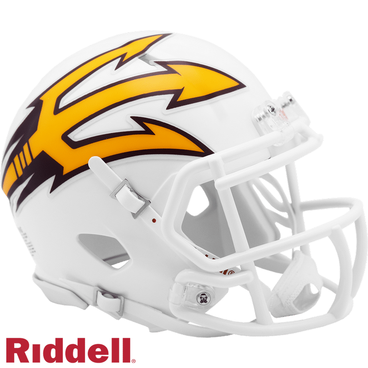 Based on one of the most popular on-field designs, this collectible Speed Mini football helmet is made specifically for fans. At approximately 5.5 inches tall, this half-scale display helmet is perfect for all football fans and great for autographs. The helmet features a mini size Speed shell, the S2BD-SW-SP face mask, a 4-point chinstrap, and official paint and decals. The perfect collectible or gift! Made by Riddell.