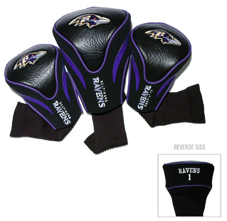 Set contains 3 sock headcovers with sleek contour shape numbered 1, 3, and X. The #1 fits all oversized drivers. Made By Team Golf