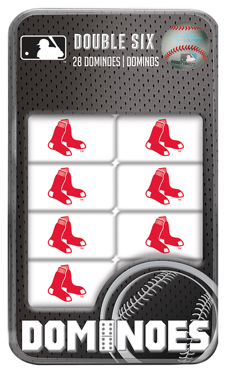 These dominoes are perfect for any sports fan! This Double-Sixes Dominoes Set comes in a collectible tin box and includes 28 resin dominoes with a team logo printed on the back of each one. Dominoes Instructions are also included. This Sports Dominoes Set is perfect for all sports fans, ages 6 and up! Bring a little bit of pride home with you by purchasing this unique Dominoes Set! Made by MasterPieces Puzzle.