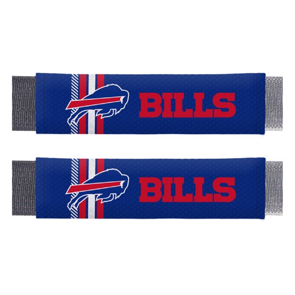Add comfort in style with this 2 piece rally seatbelt pad set. These seatbelt pads are sold in pairs and each feature a full color print with team name and logo. They are made from soft polyester and a durable velcro closure. The plush padding gives added comfort to seatbelts, luggage, messenger bags or any shoulder strap. Made by Fan Mats.
