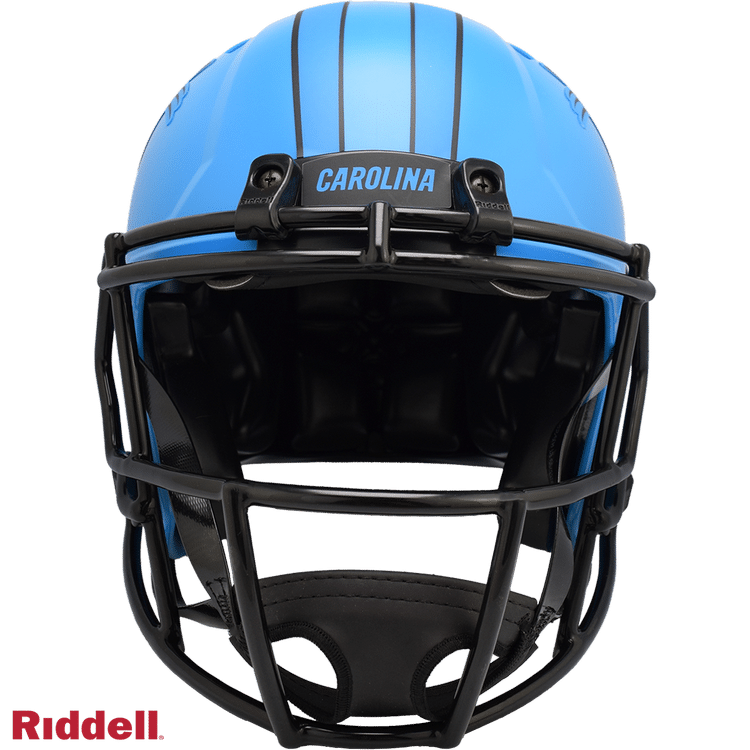 The Rave Collection puts a bright and colorful spin on NFL helmet design. Each helmet features brightly colored matte finish shells, matte one-color logo treatments matching the matte finish shell and all black parts (facemask, chinstrap, buckles, padding and bumpers). Made by Riddell.