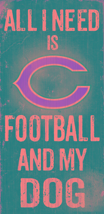 Chicago Bears Wood Sign – Football and Dog 6″x12″