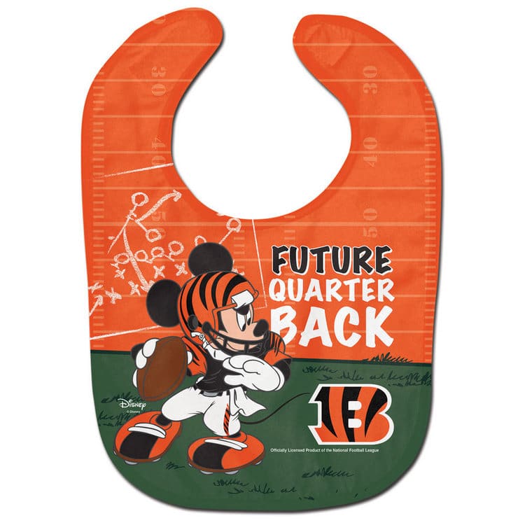 Officially licensed baby bib made of soft terry polyester front and absorbent cotton terry back. It is decorated with a fun full color imprint. Finished with adjustable baby soft hook and loop. Printed in the USA with imported fabric. Made by Wincraft.