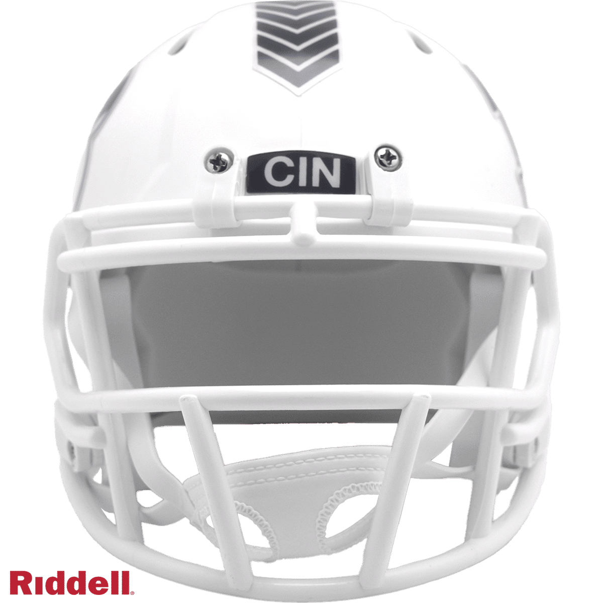 The Salute to Service helmets are inspired by those used by the military for decades, and are meant to honor the memory and selfless sacrifices of service members past and present. Each helmet features team logos, a chevron top stripe pattern, a stencil city name on front bumper, stencil Salute to Service back bumper, US Flag and official Sature to Service Ribbon. Made by Riddell.