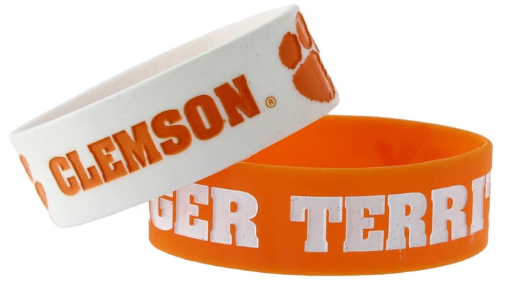 Team colored silicon rubber bracelets. Features team colored logo and wordmark in bold graphics. Includes 2 bracelets. Made by Aminco.