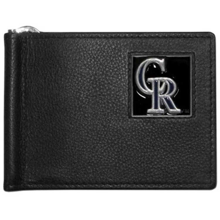 Genuine leather. Features ID pocket, credit card slots, inner pocket and metal money clip. Made by Siskiyou.