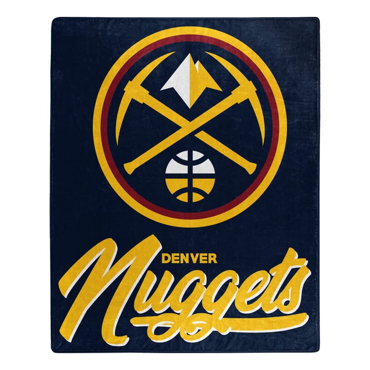 Features your team logo above the team name in script on a solid background. Soft and plush raschel fabric. Decorative binding around all edges. Measures approximately 50×60 inches. Made of 100% polyester. Made by Northwest.