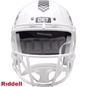 The Salute to Service helmets are inspired by those used by the military for decades, and are meant to honor the memory and selfless sacrifices of service members past and present. Each helmet features team logos, a chevron top stripe pattern, a stencil city name on front bumper, stencil Salute to Service back bumper, US Flag and official Sature to Service Ribbon. Made by Riddell.