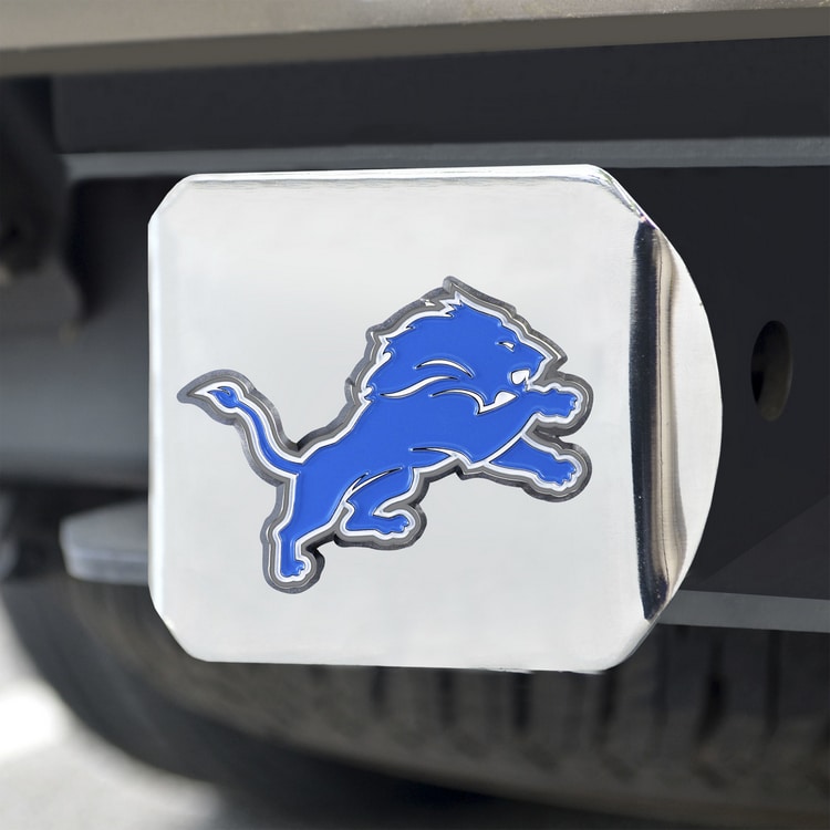 Detroit Lions Hitch Cover Color Emblem on Chrome