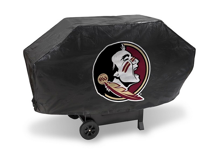 Show your favorite team and protect your barbeque grill at the same time! The cover is made of a .15 mil thick vinyl with 1/4″ flannel lining to protect stainless grill finishes. The stitching is tested at 30 lb. pull strength. The hook and loop velcro closures hold the cover in place during high winds. Large team logo is printed on one side. The grill cover will fit a grill up to 68″ wide, 35″ high and 21″ deep. Made by Rico.