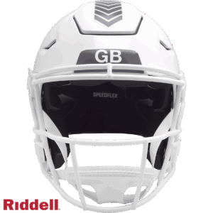 The Salute to Service helmets are inspired by those used by the military for decades, and are meant to honor the memory and selfless sacrifices of service members past and present. Each helmet features team logos, a chevron top stripe pattern, a stencil city name on front bumper, stencil Salute to Service back bumper, US Flag and official Sature to Service Ribbon. Made by Riddell.