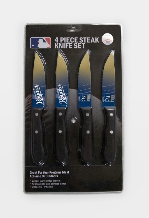 Perfect for your next game night celebration or pregame meal at home or outdoors! 430 stainless steel serrated blade. Custom team printed artwork. Ergonomic