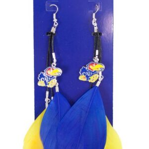 Support your favorite team while wearing these stylish hook earrings! The feather earrings features your team color and a pewter dangle logo. Each earring has 3 feathers that are each approximately 3″ long. Total length is approximately 6.5″ long. Made By Little Earth