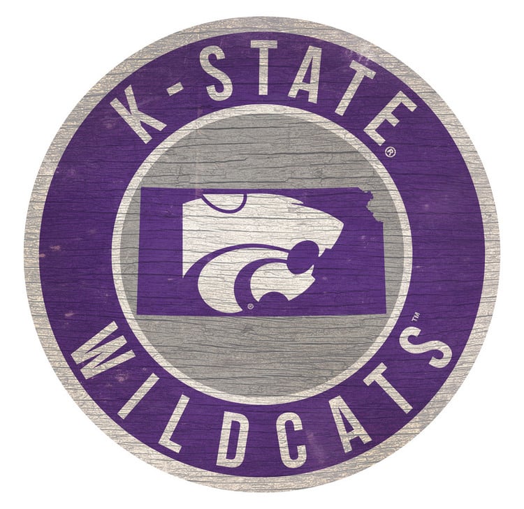 Kansas State Wildcats Sign Wood 12 Inch Round State Design