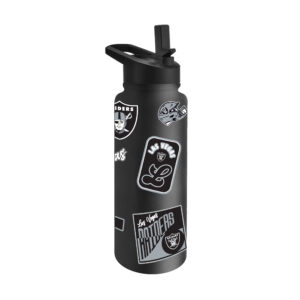 This durable 34 oz. Quencher Stainless Steel Bottle has a powder coat exterior and is made for all-day hydration. Double-walled and vacuum insulated, it features a no-spill, no-leak lid with a flip top spout and straw. The easy-carry handle makes for convenient sipping while on the go. Wide opening allows for easy fill. Keeps drinks cold for hours. Made of high quality stainless steel that does not change the taste of your beverage. Hand wash only. Made by Logo Brands.