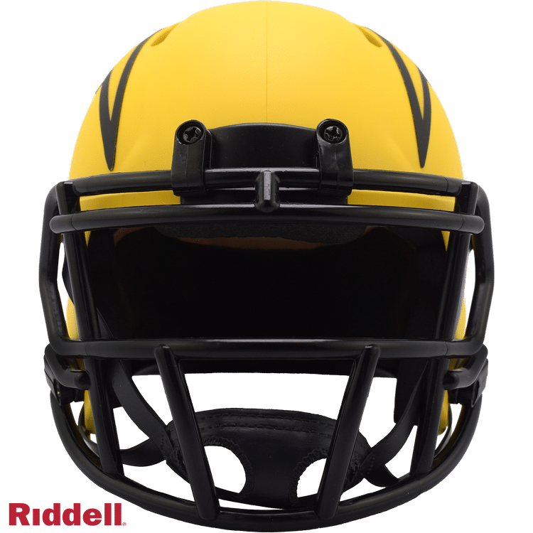 The Rave Collection puts a bright and colorful spin on NFL helmet design. Each helmet features brightly colored matte finish shells, matte one-color logo treatments matching the matte finish shell and all black parts (facemask, chinstrap, buckles, padding and bumpers). Made by Riddell.