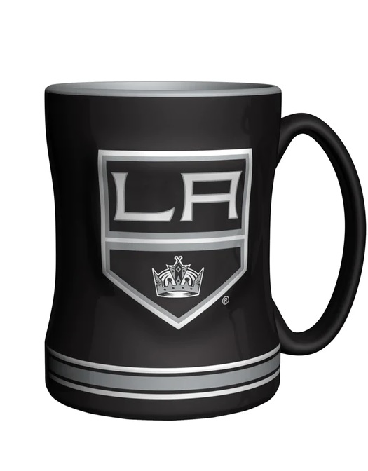 Enjoy this 14oz concave ceramic mug featuring team colors. A 3-D raised logo adds extra detail, along with a stripe around the bottom. Team name appears on the handle. Microwave and dishwasher safe. Made by Logo Brands.