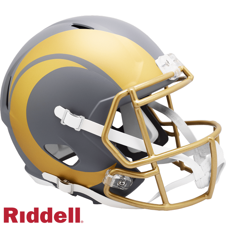 The Slate Collection takes a stylish, distinctive approach to NFL and College helmet design. Each helmet features a flat gray shell, gold or silver facemask and flat-finish gold or silver treatments of the primary helmet decal. Made by Riddell.