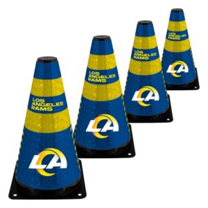 Set boundaries on the field or at your next tailgate. These multipurpose, lightweight and stackable cones come wrapped with reflective team color designs and officially licensed logos, making each cone easily visible. Designed for use on any surface. They are perfect for all outdoor activities, tailgates, dog or cycle training drills and party decor. Each cone measures approximately 5.5 inches wide and 9 inches tall. Set includes 4 cones and 1 mesh carry bag. Made by Sporticulture.
