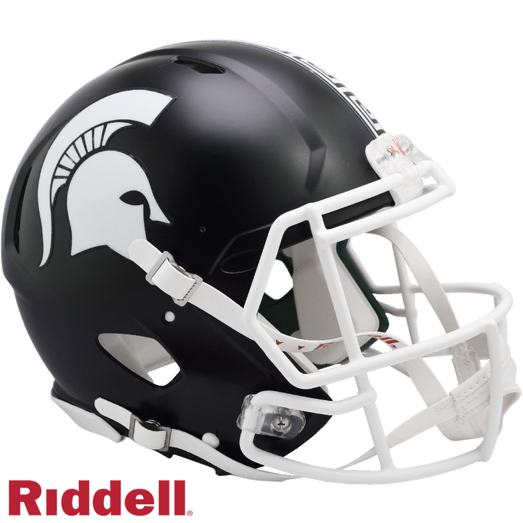 This helmet features an anodized crimson shell with interlocking UI decals. Made by Riddell.
