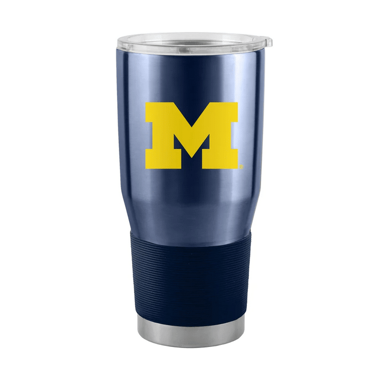Whatever your day holds, this 30oz stainless steel tumbler is up for the job. Double walled and vacuum insulated, it features an ergonomic tapered silhouette, slider lid with room for a straw, and a silicone grip. Keeps drinks cold for hours. Made of high quality stainless steel that doesn’t change the taste of your beverage. Sleeve color may differ from image. Hand wash only. Made by Logo Brands.