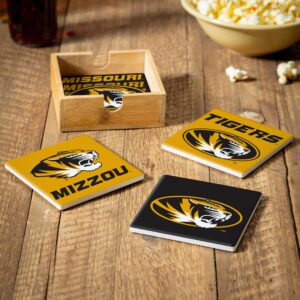 Missouri Tigers Coaster Set 4 Piece with Wood Caddy