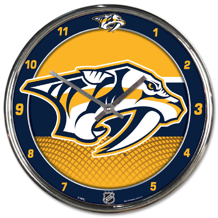 The 12 Inch chrome plated clock is both a retro classic and a trendy find for a wall clock. Stunning graphics with a metal hands make a great fit in any fan cave, office, bar, or bedroom. Printed and assembled in the US with imported materials. Made by Wincraft.