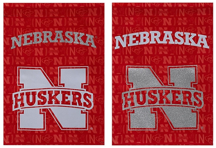 Proudly show off your team pride outside of your home with this high quality eye catching flag. Decorated with a different design on each side, this high quality nylon fabric flag will leave no one questioning what team you are most loyal to! Each side is decorated with eye catching glitter details around the team name and logo. Accent your outdoor space with team loyalty by proudly displaying this University of Nebraska Glitter Accented Double Sided Garden Flag!. Made By Evergreen Enterprises