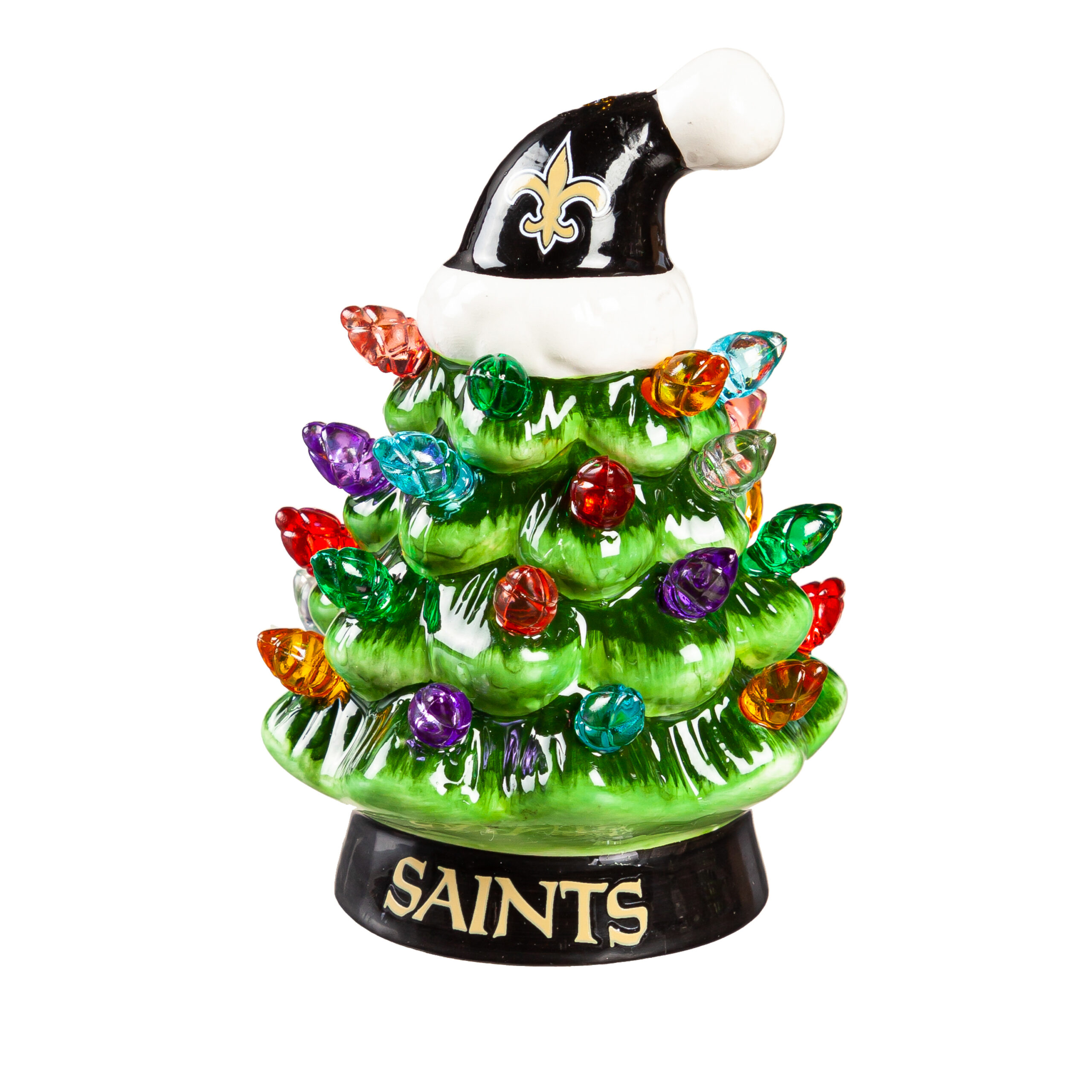 Delight friends and family with this LED Christmas Tree. Shaped like a Christmas tree decked out with lights and a Santa hat, this piece is perfect for anyone who wants to support their favorite team for the festive season. LED lights add the finishing touches and help create a magical display. It requires three AA batteries, not included. Made by Evergreen.
