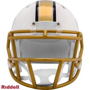 The Speed Mini Helmet is a half scale replica of one of the most popular new helmet introductions in Riddell’s history. It’s a must have for the serious collector. Includes interior padding and a 4-point chinstrap. Official colors and decals. Ideal for autographs. Approximately 5″ tall. Made By Riddell