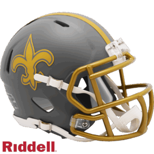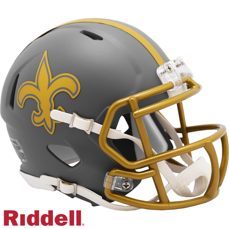 The Slate Collection takes a stylish, distinctive approach to NFL and College helmet design. Each helmet features a flat gray shell, gold or silver facemask and flat-finish gold or silver treatments of the primary helmet decal. Made by Riddell.