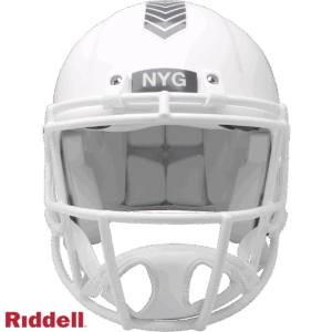 The Salute to Service helmets are inspired by those used by the military for decades, and are meant to honor the memory and selfless sacrifices of service members past and present. Each helmet features team logos, a chevron top stripe pattern, a stencil city name on front bumper, stencil Salute to Service back bumper, US Flag and official Sature to Service Ribbon. Made by Riddell.