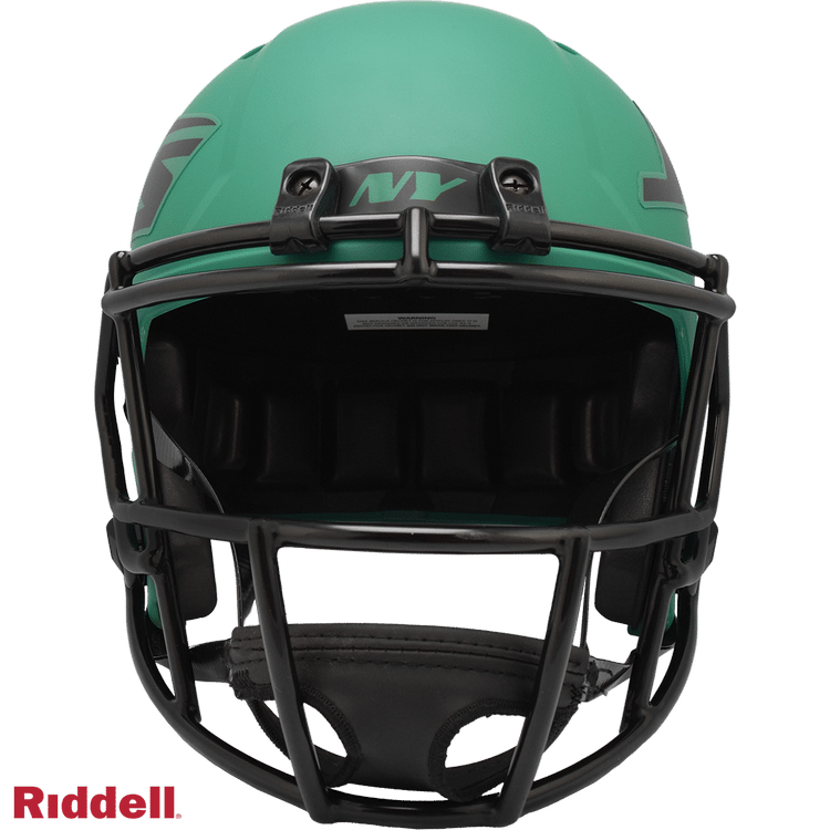 The Rave Collection puts a bright and colorful spin on NFL helmet design. Each helmet features brightly colored matte finish shells, matte one-color logo treatments matching the matte finish shell and all black parts (facemask, chinstrap, buckles, padding and bumpers). Made by Riddell.