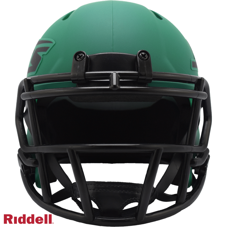 The Rave Collection puts a bright and colorful spin on NFL helmet design. Each helmet features brightly colored matte finish shells, matte one-color logo treatments matching the matte finish shell and all black parts (facemask, chinstrap, buckles, padding and bumpers). Made by Riddell.