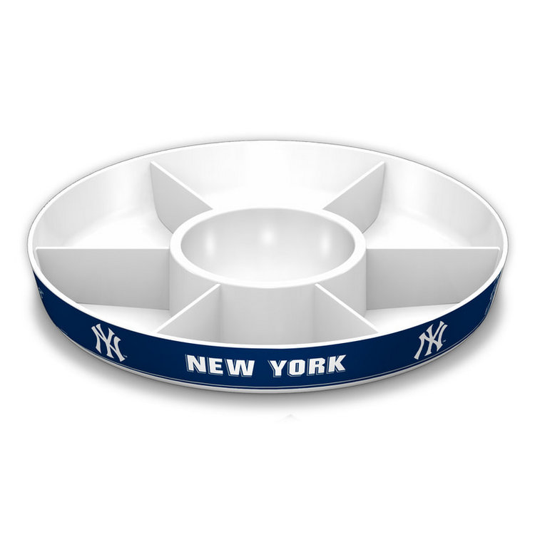 Snack in spirited style with this versatile Party Platter! Bright and bold 14 1/2″ dia. melamine platter features your favorite football team graphics and colors and can be used alone or with custom dividers. Includes 6 removable dividers and a dipping bowl, so you can choose from 7 different serving configurations by simply sliding the slotted pieces together. Specify team. Hand wash with mild soap.