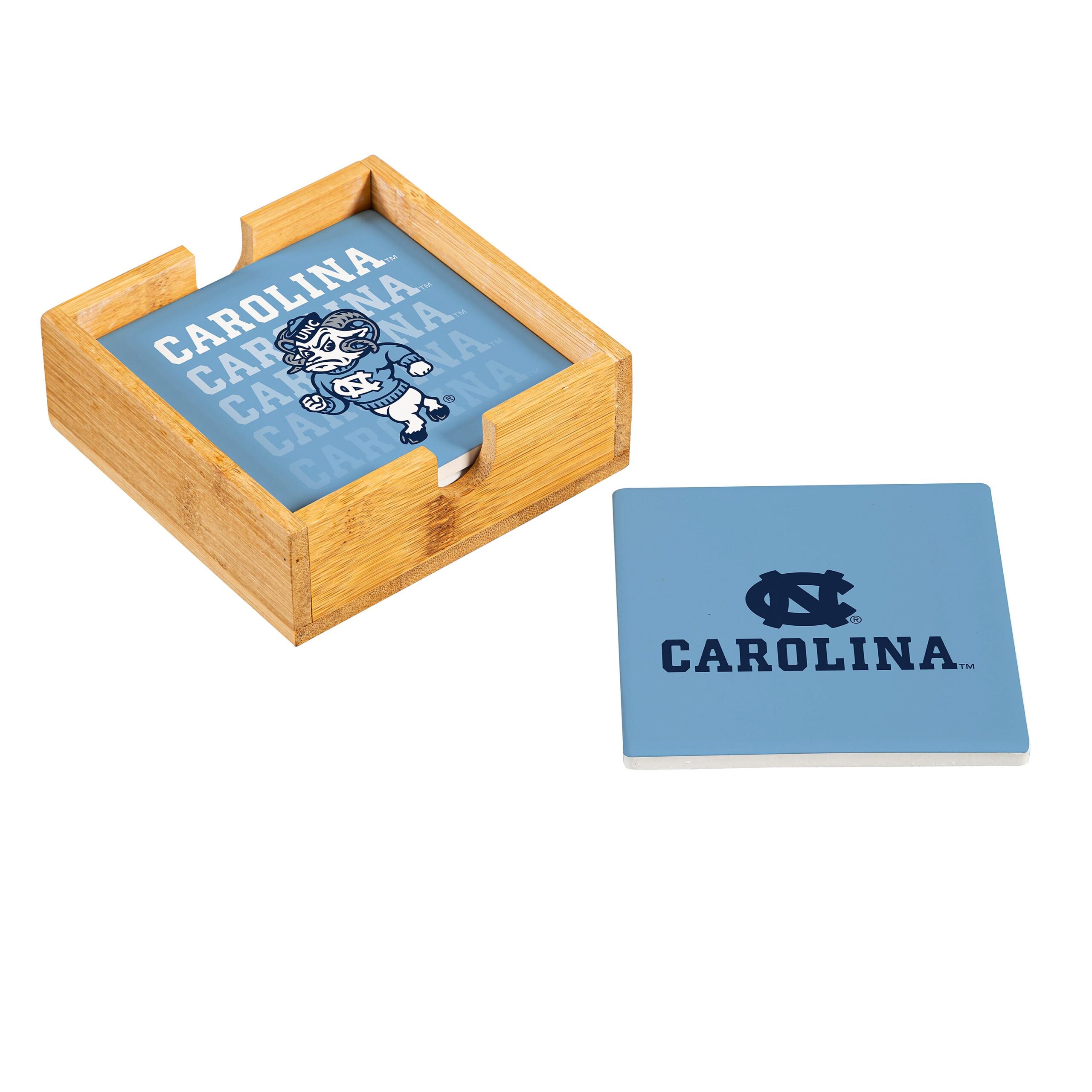 Be the first to review “North Carolina Tar Heels Coaster Set 4 Piece with Wood Caddy”