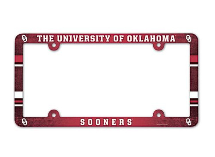 Full Color License Plate Frame that are usable as a fan decoration on the outside of a standard car license plate, front or back. The frame is molded in durable plastic and top surface printed with a durable ink on the entire top surface. The design maximizes space for tab sticker clearance, but you should still check the legalities of frames in your state. Made in USA. Made By Wincraft, Inc.