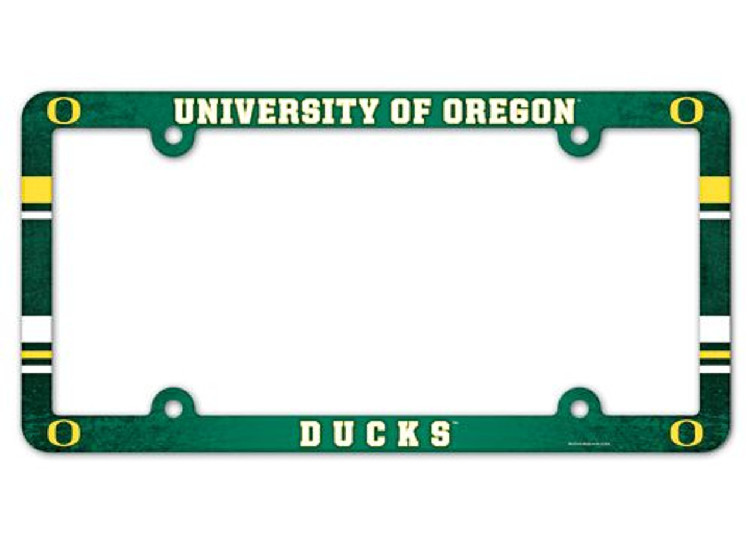 Full Color License Plate Frame that are usable as a fan decoration on the outside of a standard car license plate, front or back. The frame is molded in durable plastic and top surface printed with a durable ink on the entire top surface. The design maximizes space for tab sticker clearance, but you should still check the legalities of frames in your state. Made in USA. Made By Wincraft, Inc.