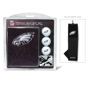 Set includes an embroidered towel, three golf balls and twelve tees all with official team logos. Made by Team Golf.