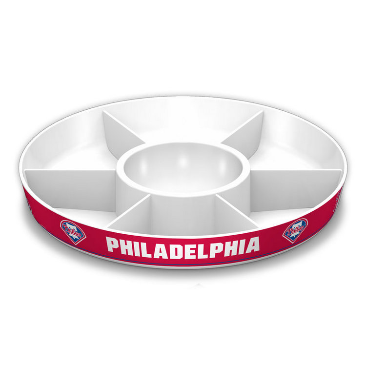 Snack in spirited style with this versatile Party Platter! Bright and bold 14 1/2″ dia. melamine platter features your favorite football team graphics and colors and can be used alone or with custom dividers. Includes 6 removable dividers and a dipping bowl, so you can choose from 7 different serving configurations by simply sliding the slotted pieces together. Specify team. Hand wash with mild soap.