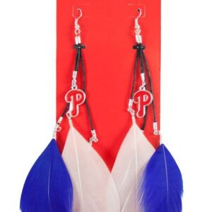 Support your favorite team while wearing these stylish hook earrings! The feather earrings features your team color and a pewter dangle logo. Each earring has 3 feathers that are each approximately 3″ long. Total length is approximately 6.5″ long. Made By Little Earth