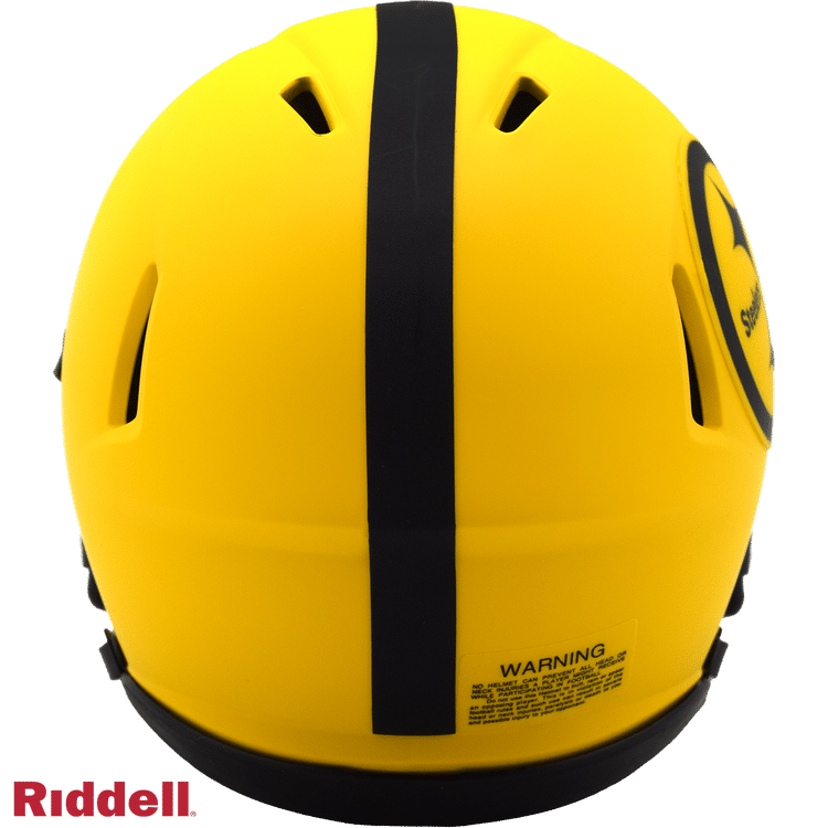 The Rave Collection puts a bright and colorful spin on NFL helmet design. Each helmet features brightly colored matte finish shells, matte one-color logo treatments matching the matte finish shell and all black parts (facemask, chinstrap, buckles, padding and bumpers). Made by Riddell.