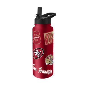 This durable 34 oz. Quencher Stainless Steel Bottle has a powder coat exterior and is made for all-day hydration. Double-walled and vacuum insulated, it features a no-spill, no-leak lid with a flip top spout and straw. The easy-carry handle makes for convenient sipping while on the go. Wide opening allows for easy fill. Keeps drinks cold for hours. Made of high quality stainless steel that does not change the taste of your beverage. Hand wash only. Made by Logo Brands.