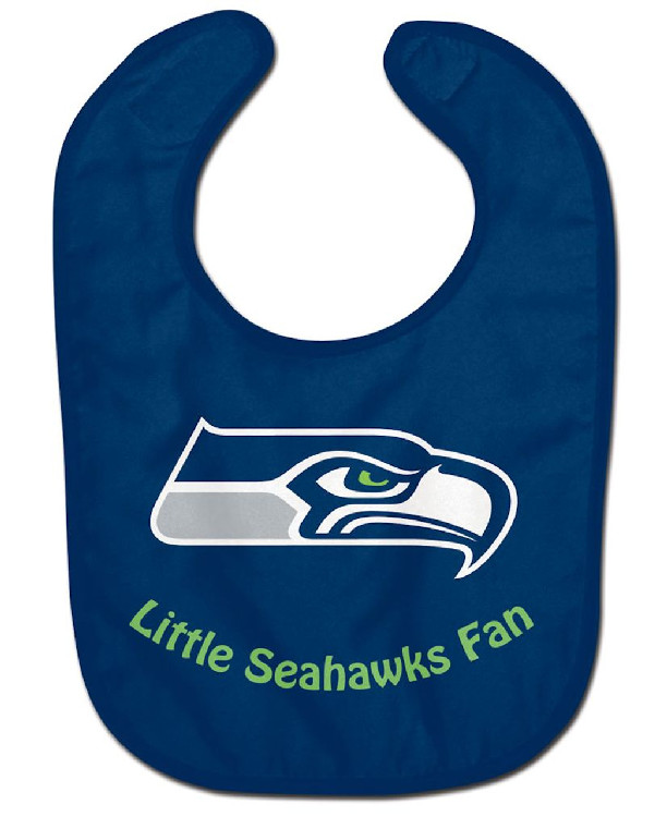 Officially licensed NFL baby bib made of two ply soft polyester front and absorbent cotton terry back. It is decorated with a fun full color imprint. Finished