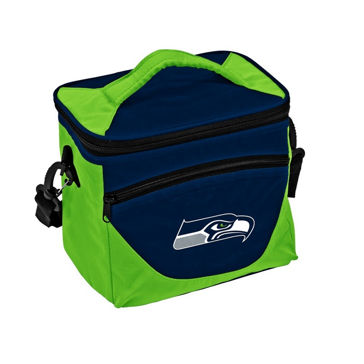 The Halftime Cooler is a practical sized cooler for any outing. It is made with a heat-sealed, leak-proof lining to help keep your snacks or drinks cold. It has a zipper pocket on the front for dry storage. Use the handle on the lid or the detachable shoulder strap. The two-color design features a logo on the front. Holds nine 12oz cans. Made by Logo Brands.